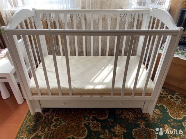 Продаётся белая детская кровать-маятник с двухсторонним матрасом(жесткая и мягкая сторона). Срочно. Состояние: Б/у BuyReklama.ru